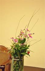 「今から三越の展示会のお花の活け込みに行くんです。」とお茶の先生 色々な秋の茶花をペットボトルに入れてたのを持ってご来店下さいました。 「こうすれば お花の移動が簡単!」 ・・・・なるほど 繊細な茶花が傷まずにすみます。・・・ 『お茶人さんにとってお花は一番のおごちそう』 お茶席で良い状態の花を入れるのは『一期一会』です。 |